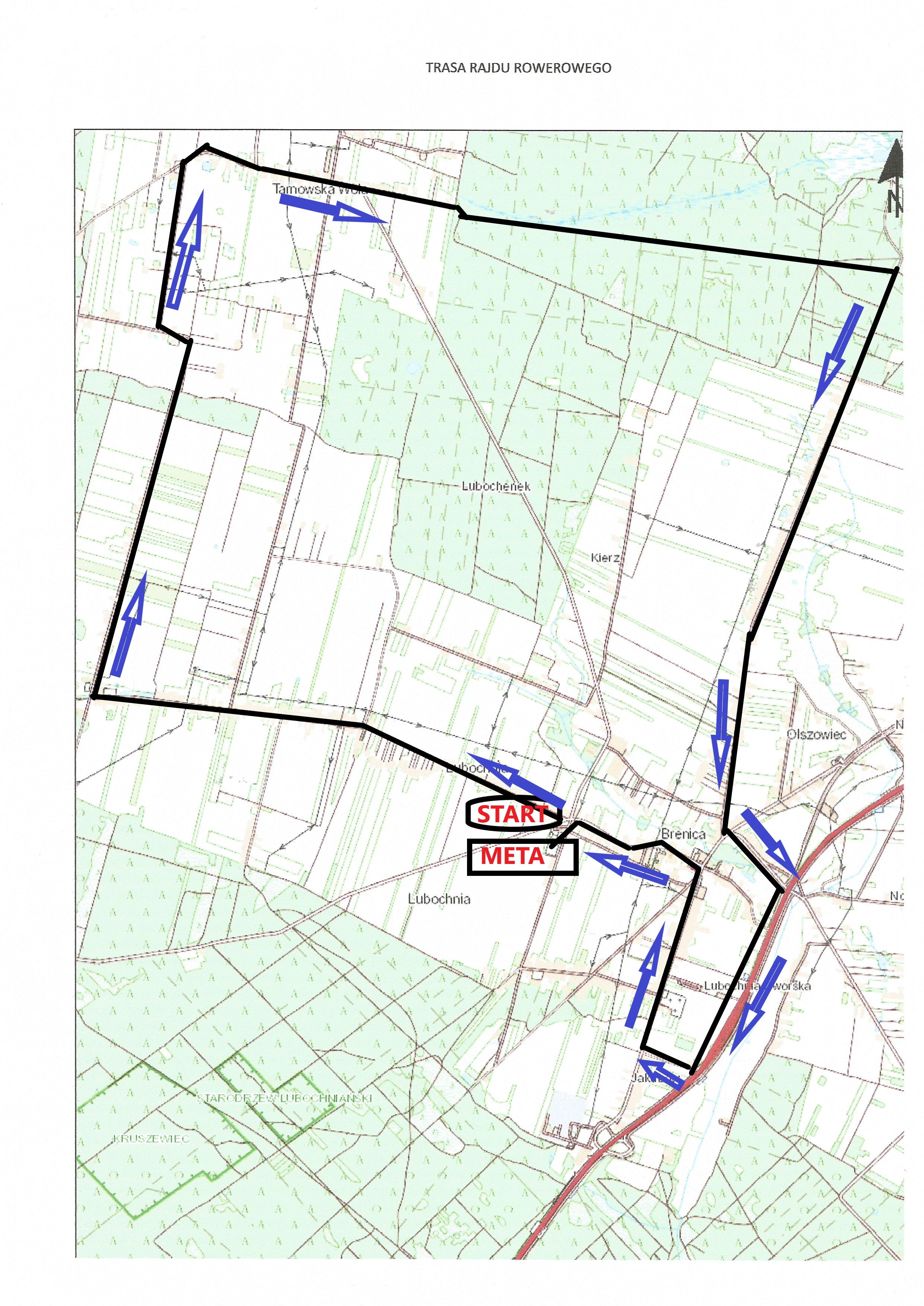Trasa rajdu będzie przebiegać następująco: START Stadion LKS Lubochnia, Małecz, Dębniak, Tarnowska Wola, Brenica, Olszowiec, Jakubów, META Stadion LKS Lubochnia.