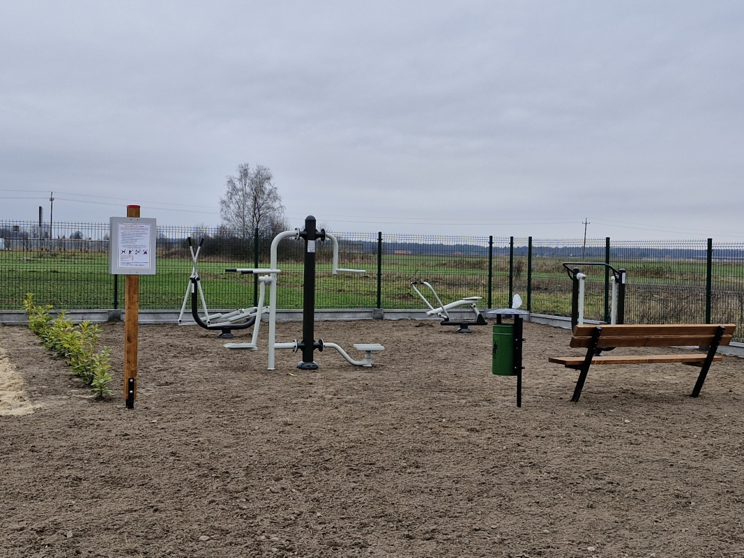 5. Wyposażenie terenu w urządzenia siłowni plenerowej, tj. urządzenie fitness biegacz, urządzenie fitness dwustanowiskowe twister/wahadło, urządzenie fitness orbitrek, urządzenie siłowni plenerowej wioślarz